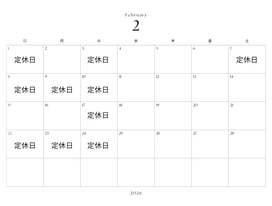 | 定休日 | 火曜日、日曜日、第2・4月曜日 |